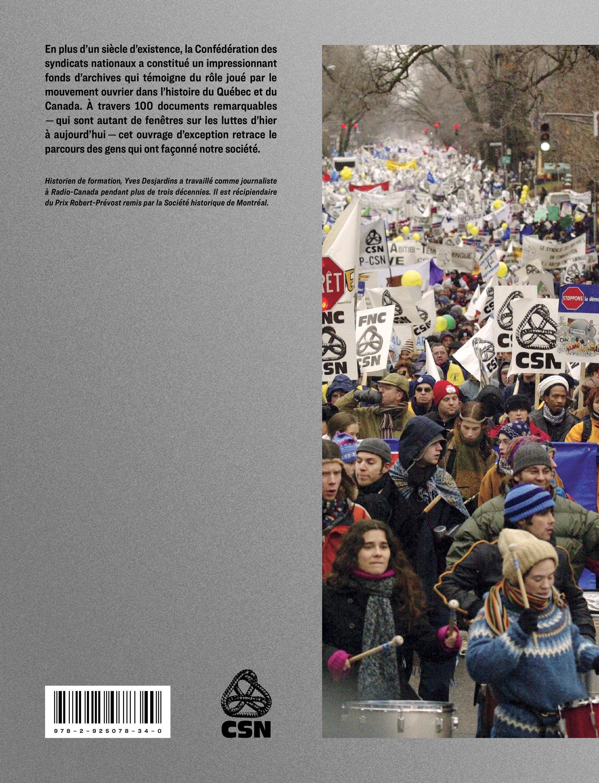En plus d’un siècle d’existence, la CSN a constitué un impressionnant fonds d’archives qui témoigne du rôle joué par le mouvement ouvrier dans l’histoire du Québec et du Canada. À travers plus de 100 documents remarquables — qui sont autant de fenêtres sur les luttes d’hier et d’aujourd’hui —, cet ouvrage d’exception retrace le caractère singulier de la contribution des gens qui ont façonné notre société contemporaine.